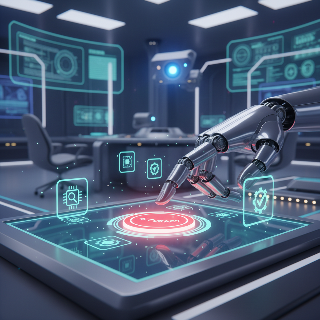 An edgy, cinematic photo dramatizing the tension of AI-driven accuracy decisions in automation.