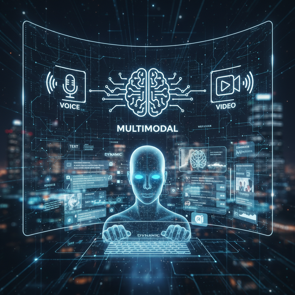 Image: AI chatbot handling multiple input types in the future, juggling text, voice, and video.