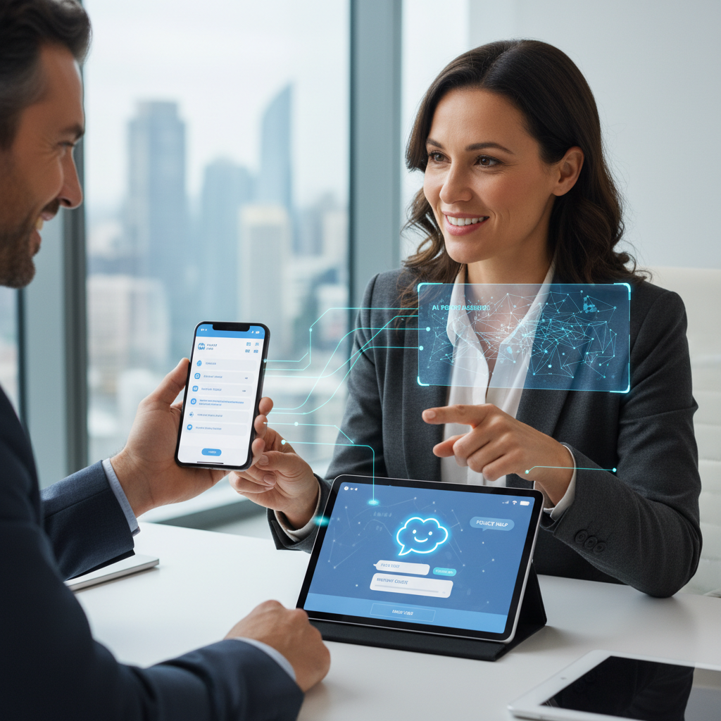 Alt text: Agent and chatbot collaborating in insurance service, demonstrating AI-human synergy