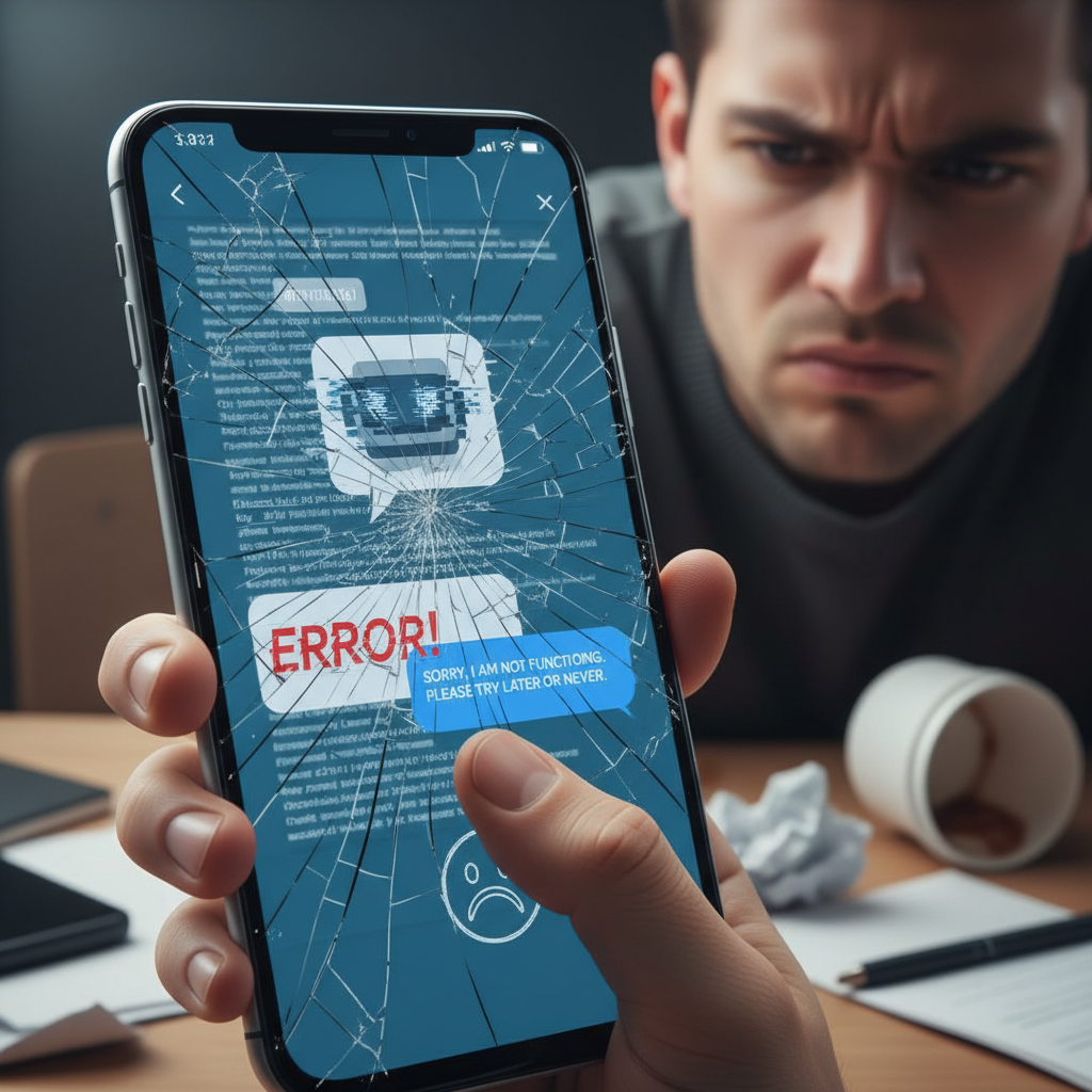 Alt: Broken chatbot interface causing user frustration and lost marketing leads.