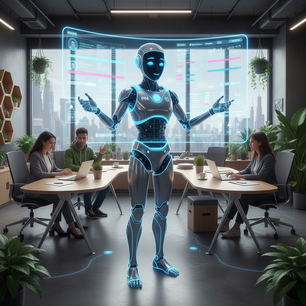 An artificial intelligence-powered conversational agent designed to handle routine project management tasks, interpret user input, and automate reminders and updates.