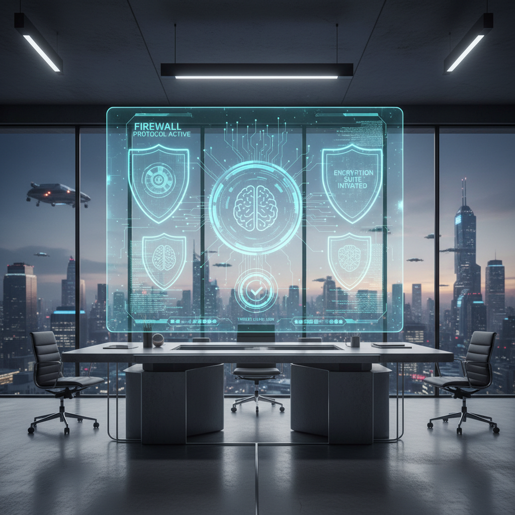 Photo: AI chatbot dashboard with visualized security layers, representing a multi-faceted defense approach.