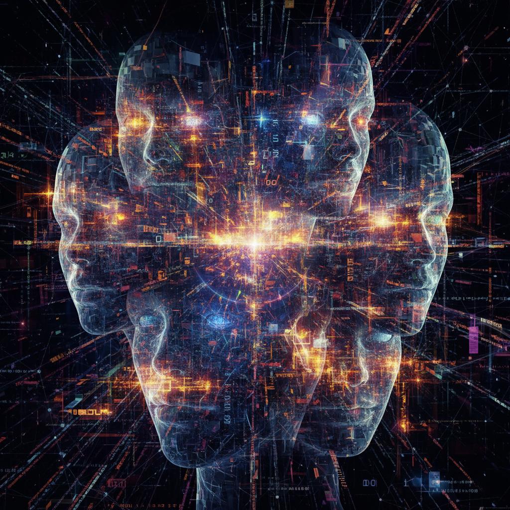 Alt text: Symbolic photo of fragmented digital identities and faces blending into data streams, AI chatbot user profiling concept