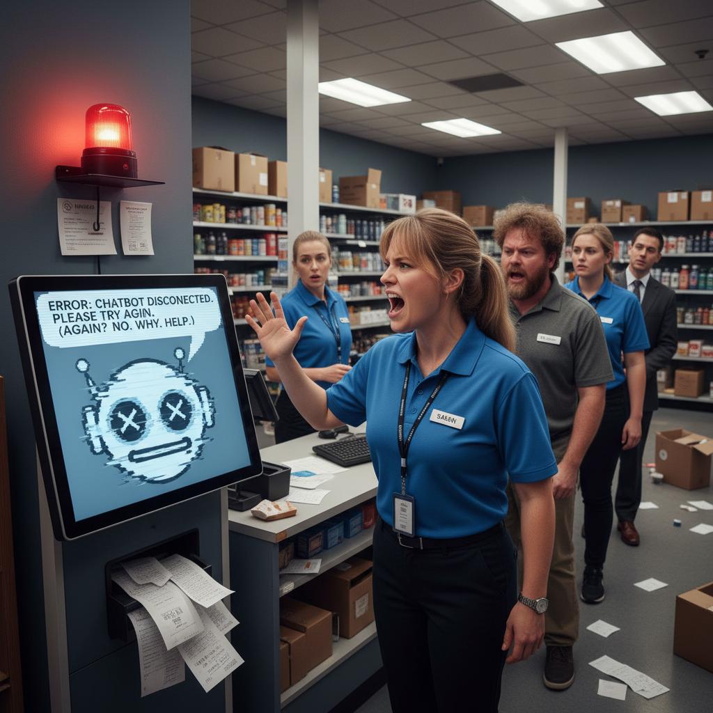 Retail staff under pressure from customers after a chatbot failure, highlighting the real-world impact of inadequate AI chatbot user testing.