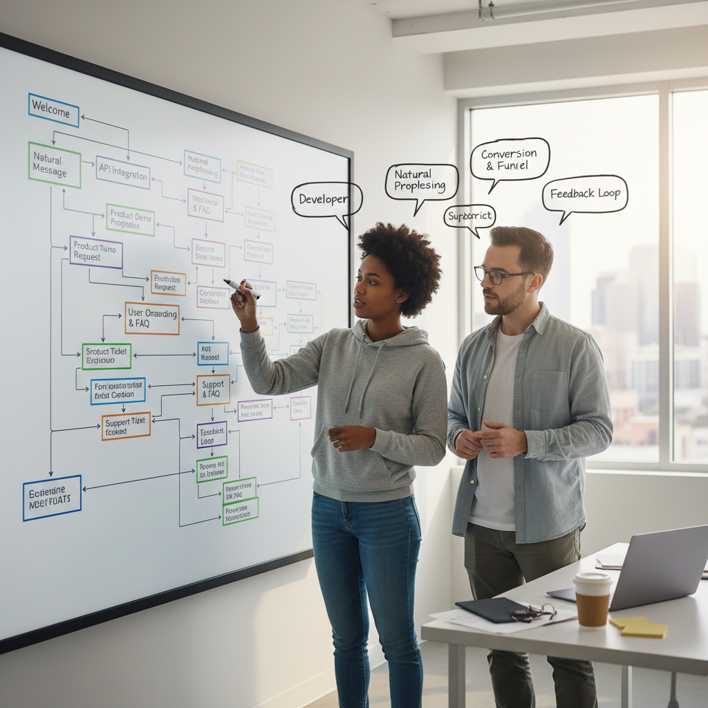 - Map user journeys: Sketch out every interaction and branch. Where does the conversation start? Where can it go?