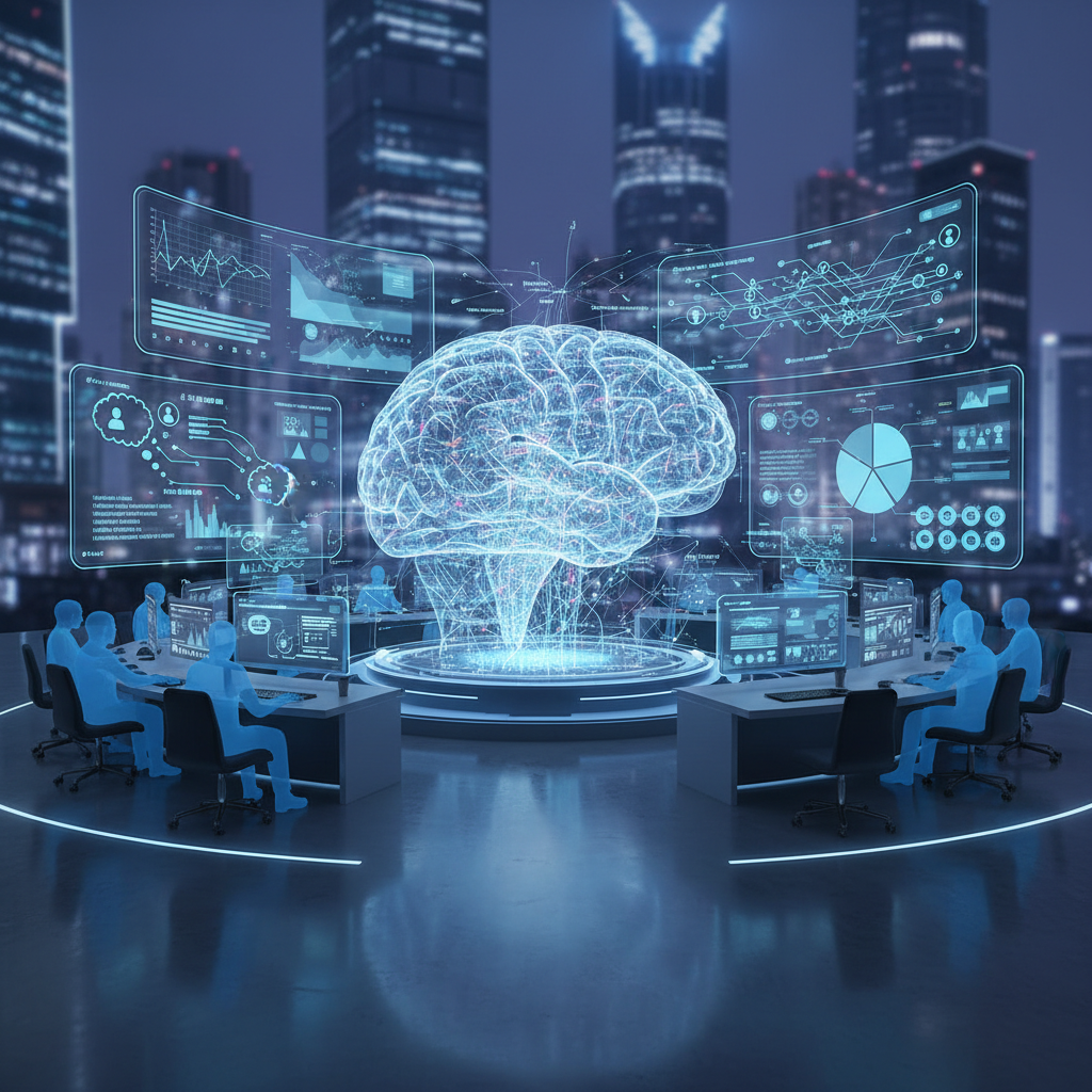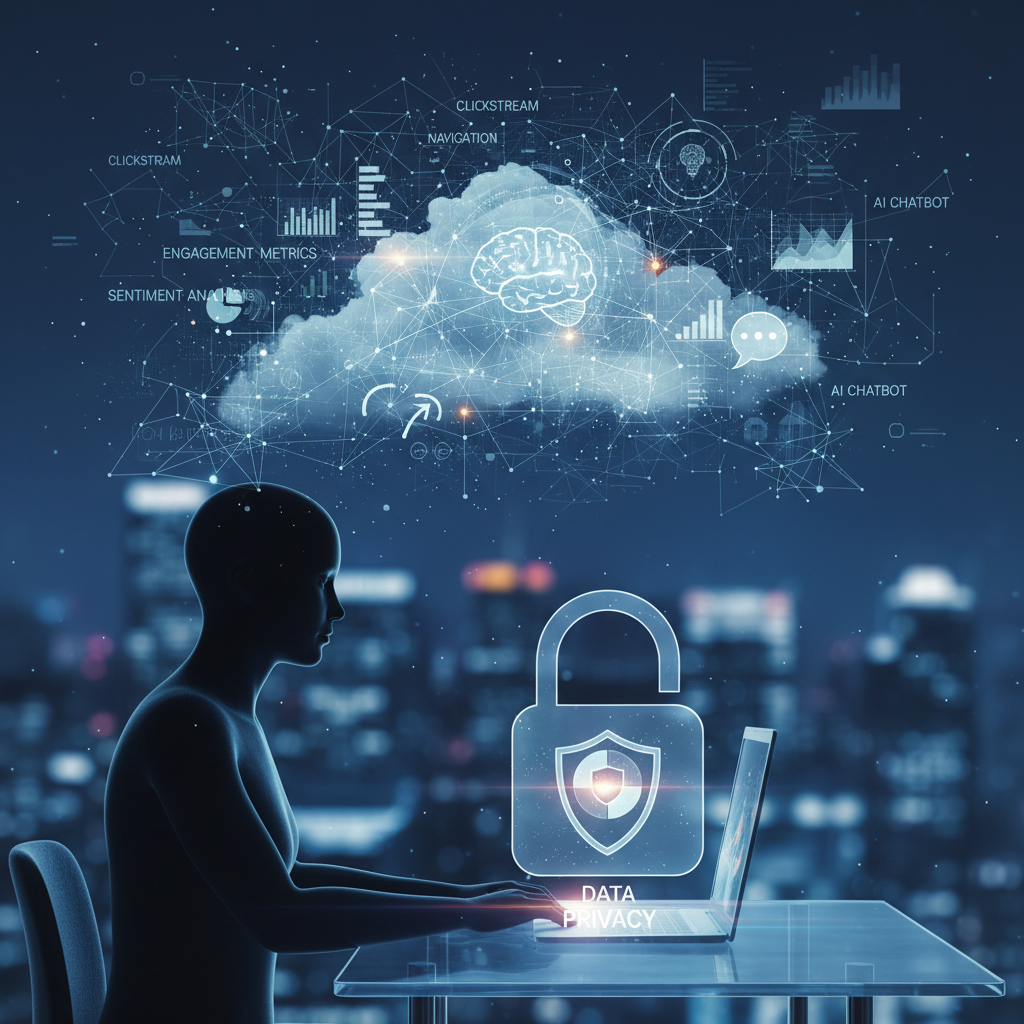 Alt text: AI chatbot analyzing behavioral data in real time, visualized as a neon-lit digital brain mapping user conversations.