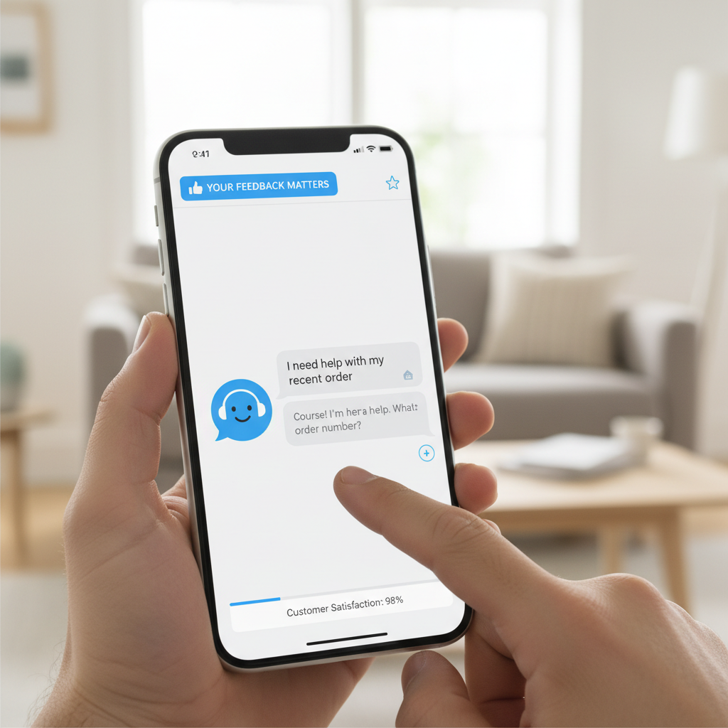 A customer receives a helpful chatbot resolution on their smartphone, representing effective containment rate in AI customer service.