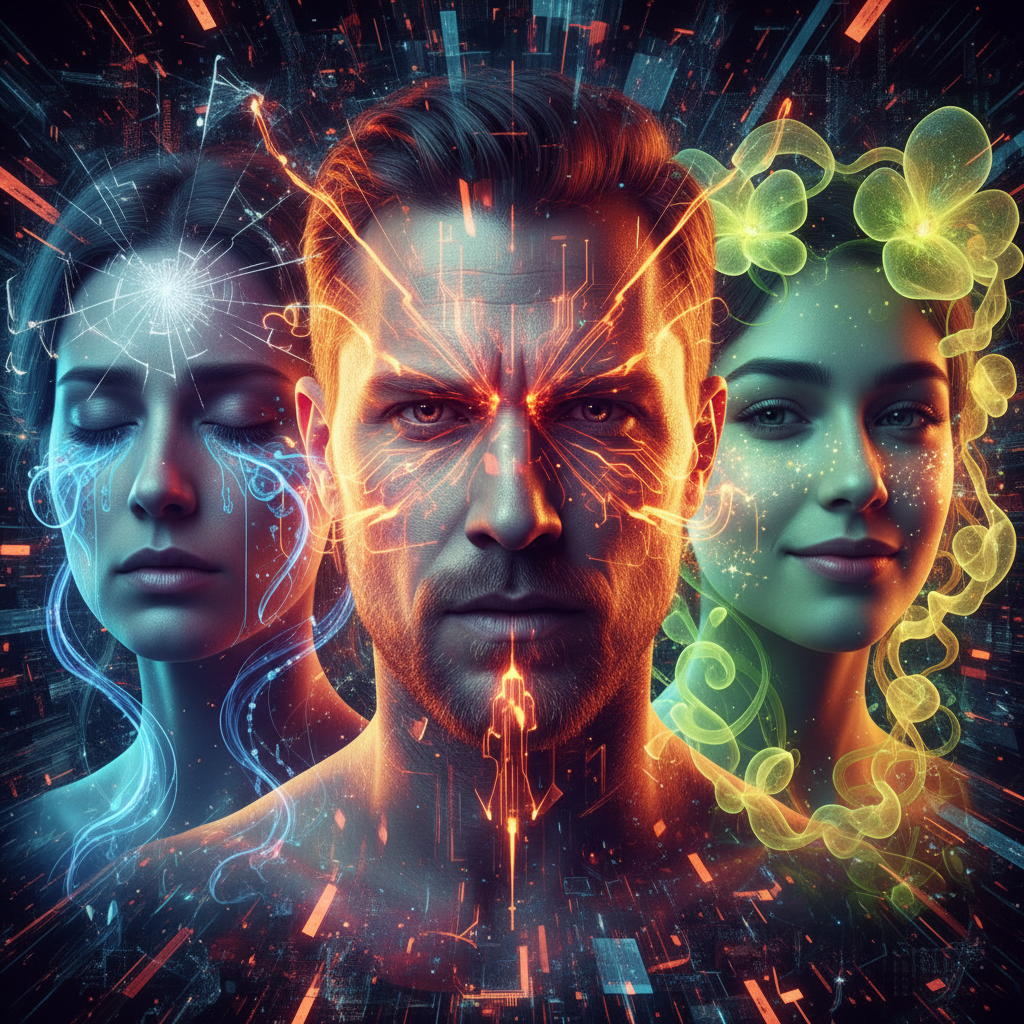 Alt text: Human faces with digital overlays visualizing emotion and intent in chatbot journeys.