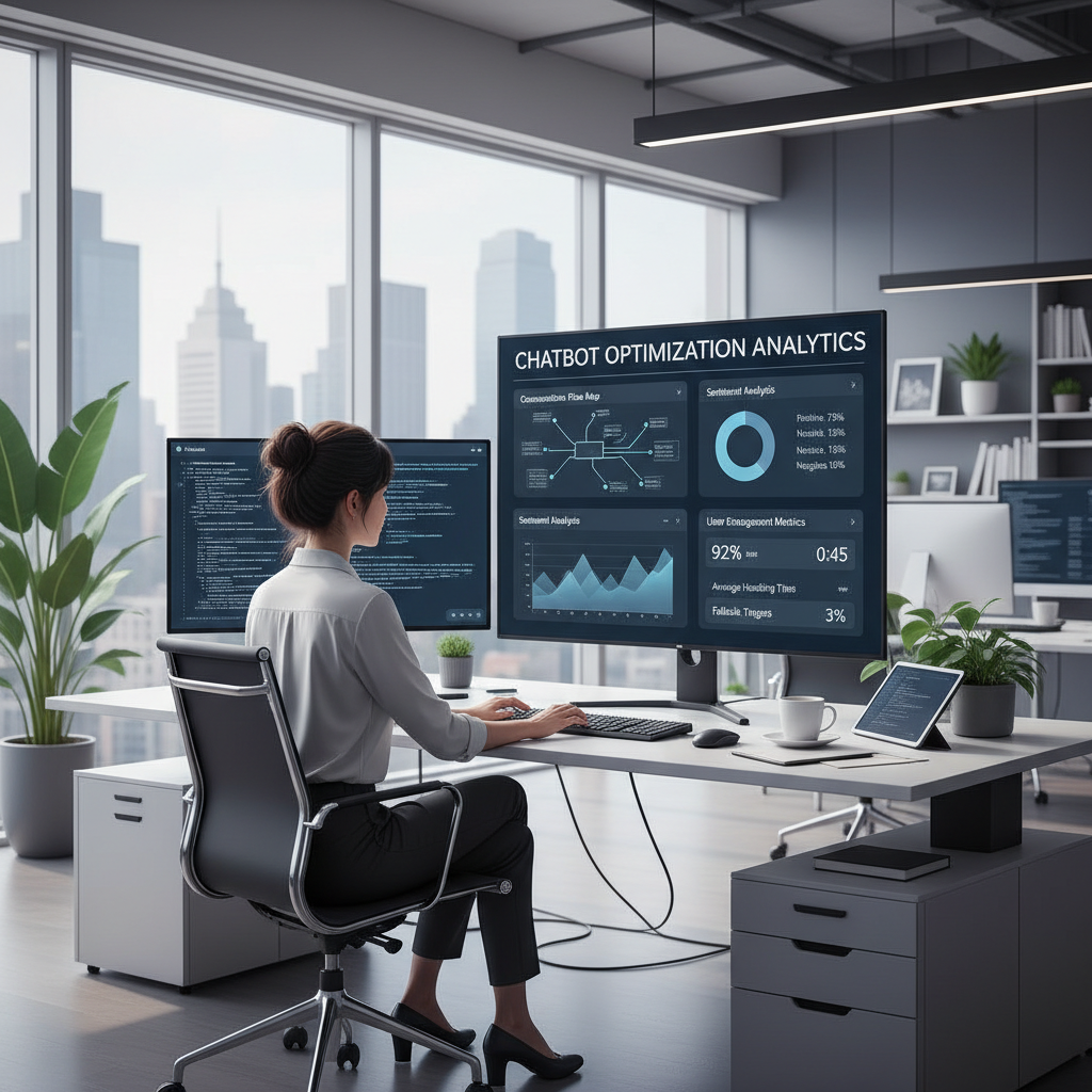 Person analyzing chatbot optimization process in a modern workspace—representing the response optimization workflow.
