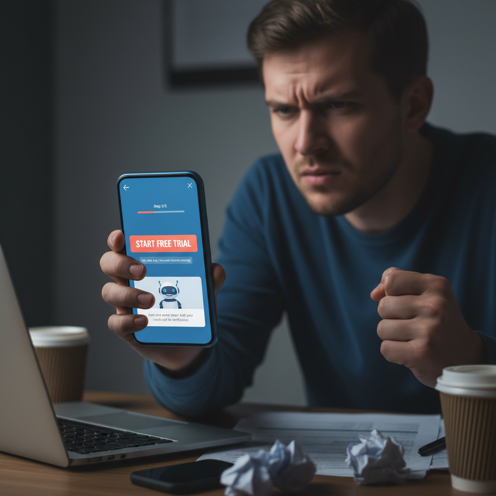 - Bait-and-switch prompts: Promising quick onboarding, then bombarding with unexpected questions.